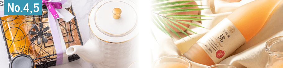 信州産白桃の濃厚なジュースに、香ばしいクッキーと花咲くラングドシャ「ロゼッタ」を詰め合わせた、夏限定の贅沢ギフト。